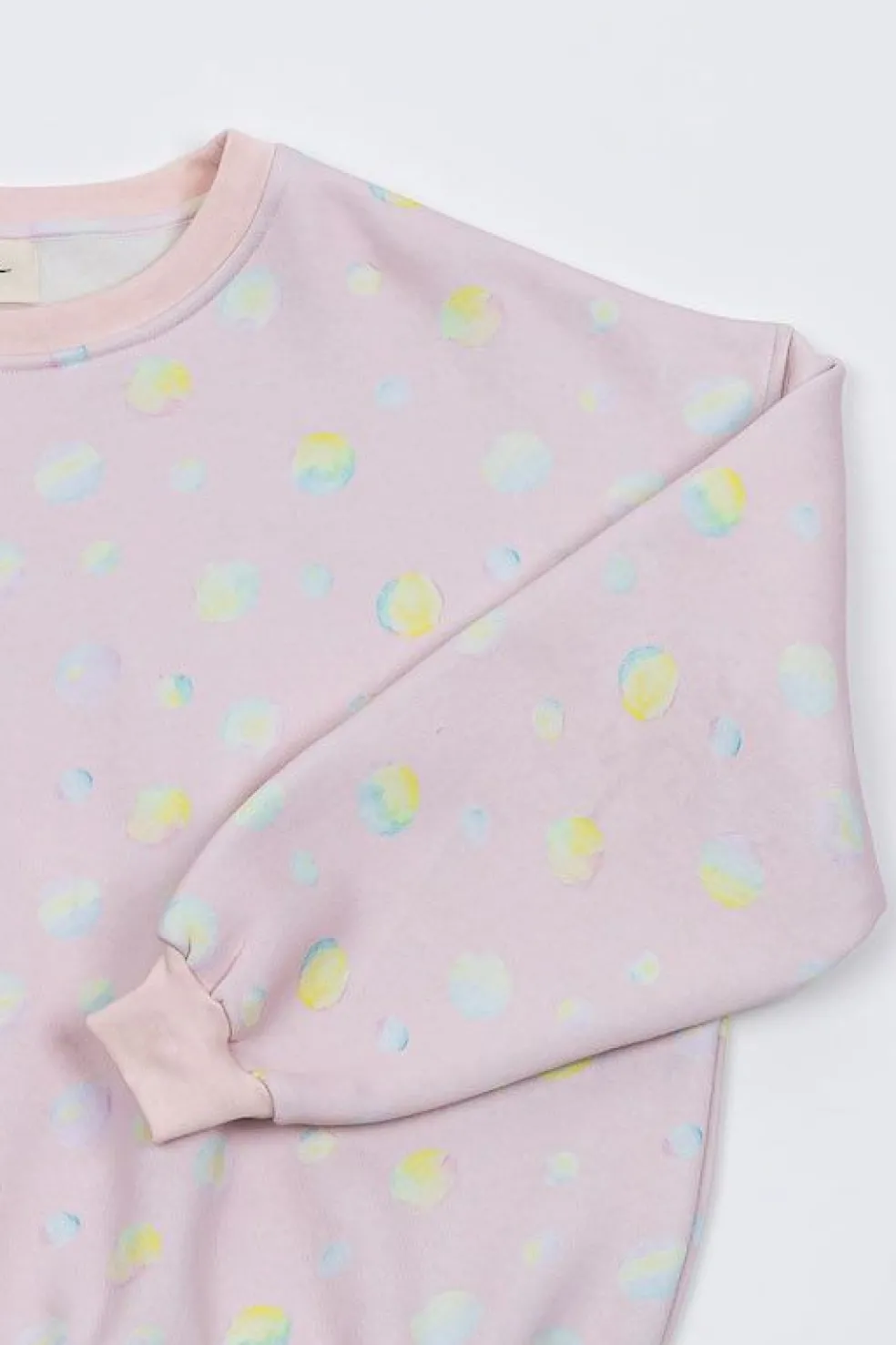 Coupe oversize légèrement crop, avec emmanchure basse pour un look rétro-contemporain. Le motif Bulle rose est entièrement dessiné à la main par la créatrice de Ayuna.