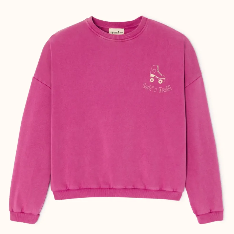 Confectionné en garment dye, le nouveau sweat Riya présente un effet délavé unique qui lui donne un aspect vintage. Sa coupe loose et son imprimé « Let’s Roll » le rendent aussi moderne que stylé. À enfiler avec un jean, une jupe ou même en dessous d’une salopette.