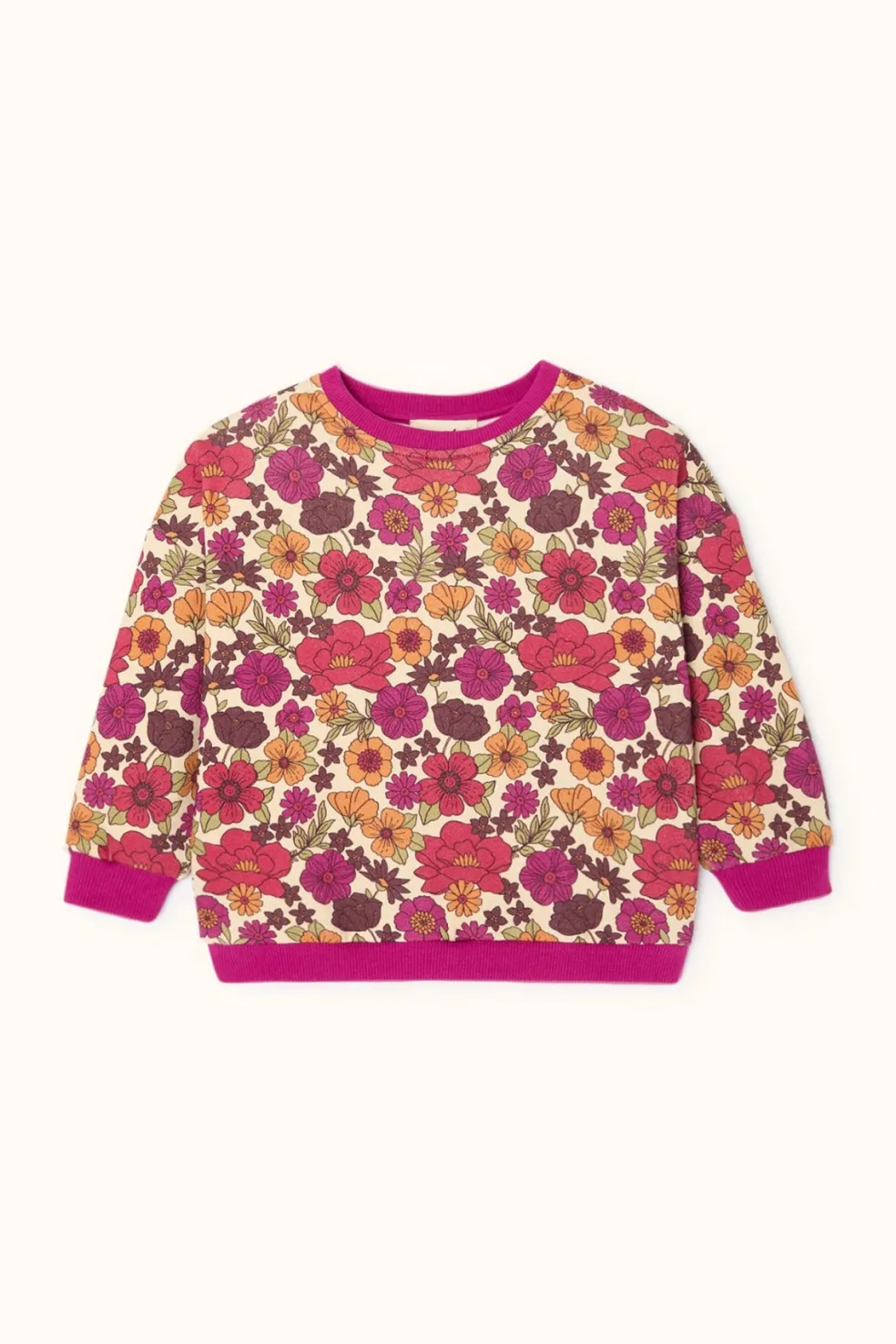 Le sweat loose Sahari imprimé « Joy » Macadamia sera parfait pour un look confortable, stylé et lumineux. En coton molletonné doux, votre mini ne voudra plus le quitter !