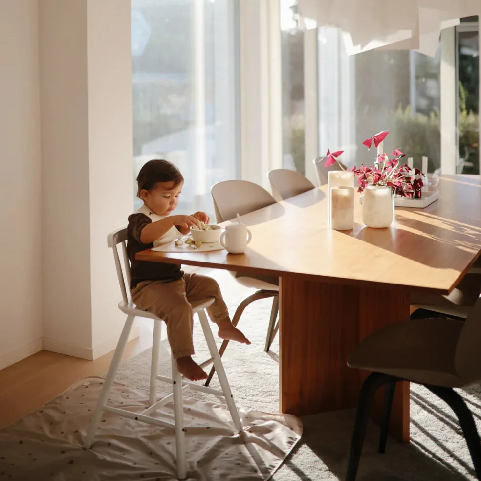 Le tapis anti-éclaboussures de Mushie est conçu pour aider à garder les dégâts à distance pendant les repas ou les jeux. Ces tapis polyvalents se glissent sous les chaises hautes et aident à protéger les tables pendant les travaux manuels. La construction légère et durable le rend facile à plier.