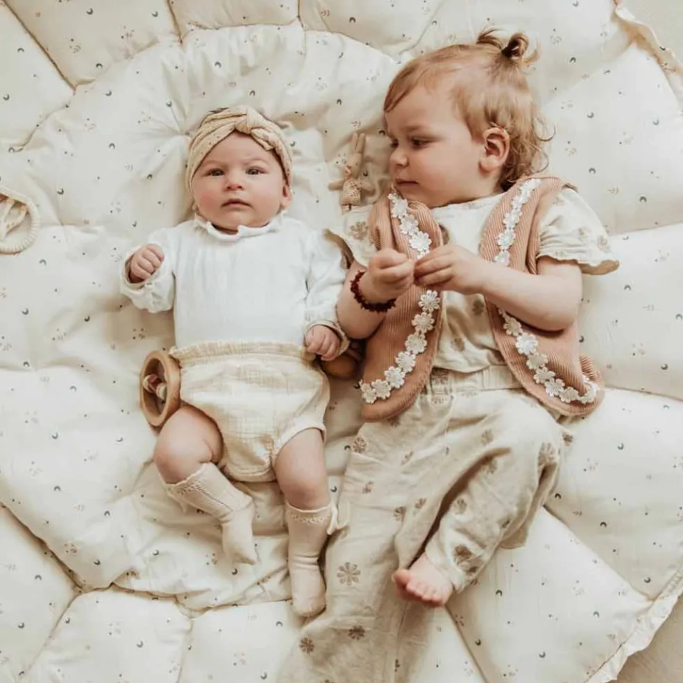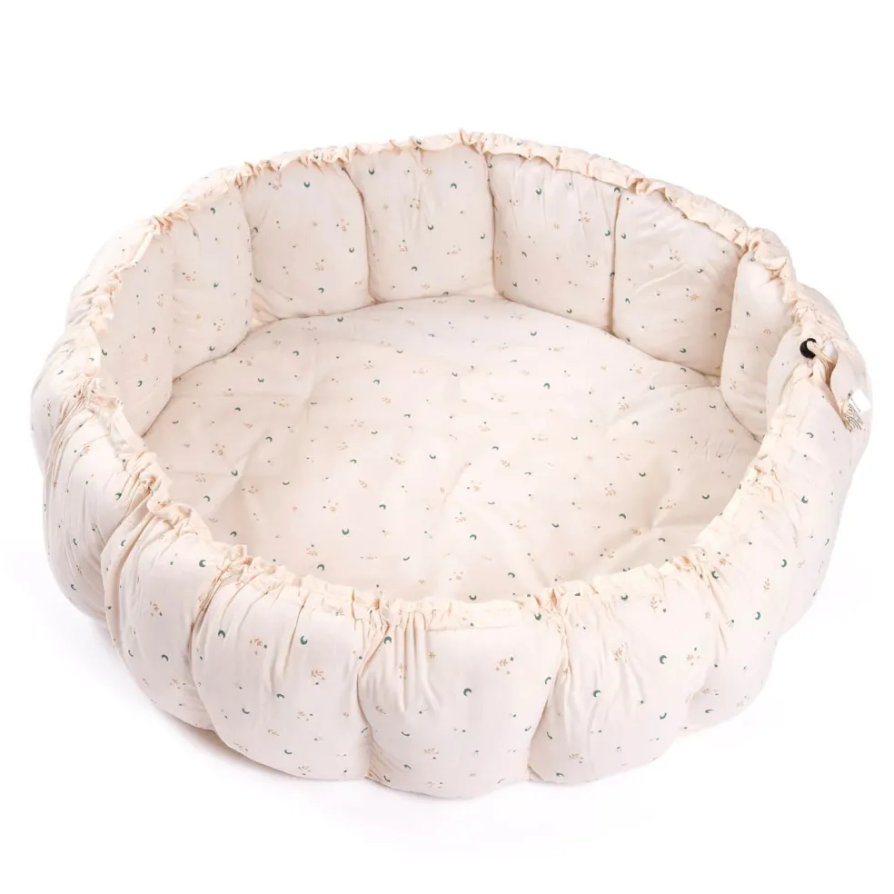 Ce tapis d’éveil est très pratique lorsque les pétales sont redressés, vous pouvez l’utiliser en tant que parc d’éveil au contour sécurisant, ou encore en panier de rangement. Les pétales sont redressés grâce à un système de cordes qu’on tire, une action simple qui s’effectue en moins d’une minute pour aller du tapis au panier. Agréable et moelleux, c’est un produit parfait pour les premiers mois de bébé.