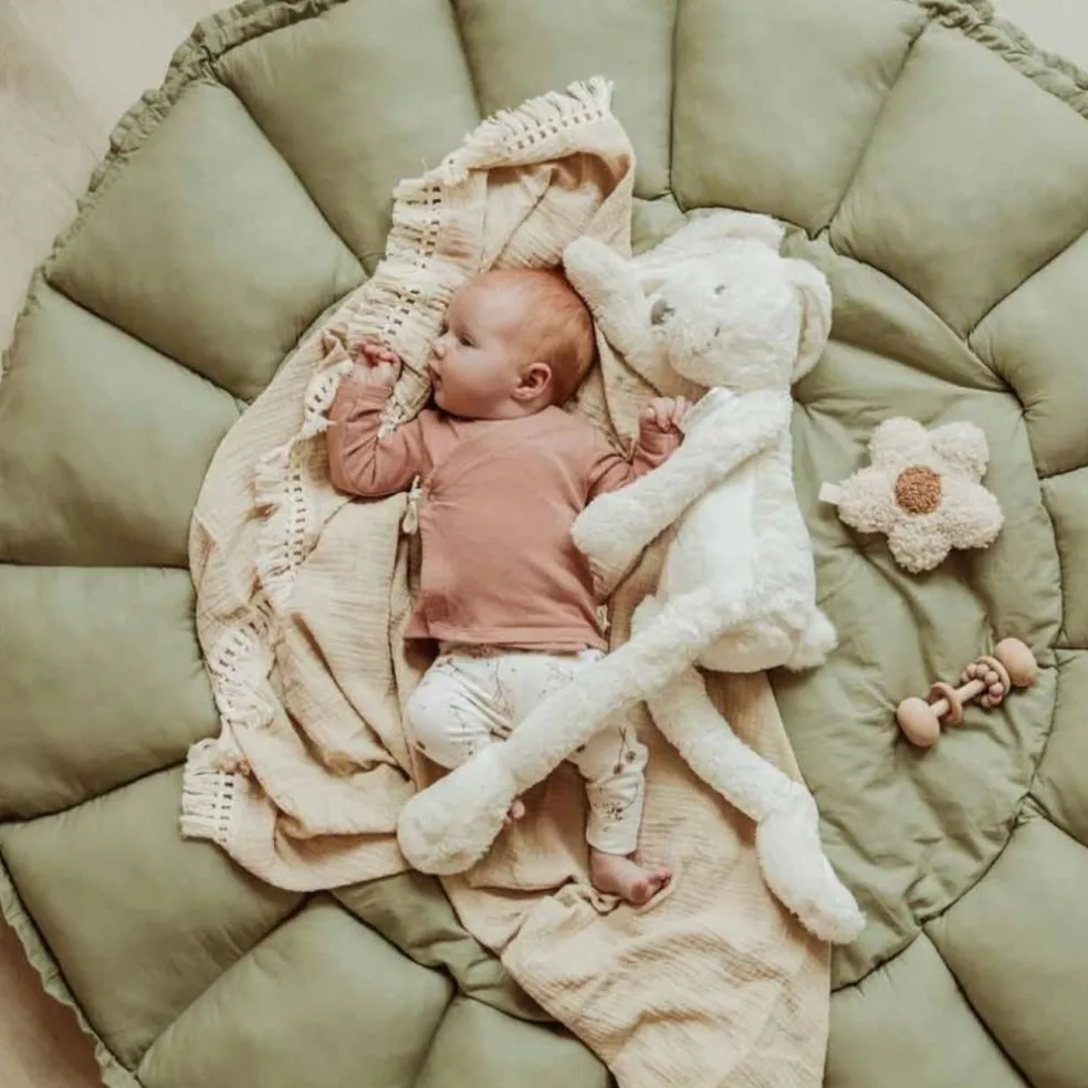 Ce tapis d’éveil est très pratique lorsque les pétales sont redressés, vous pouvez l’utiliser en tant que parc d’éveil au contour sécurisant, ou encore en panier de rangement. Les pétales sont redressés grâce à un système de cordes qu’on tire, une action simple qui s’effectue en moins d’une minute pour aller du tapis au panier. Agréable et moelleux, c’est un produit parfait pour les premiers mois de bébé.
