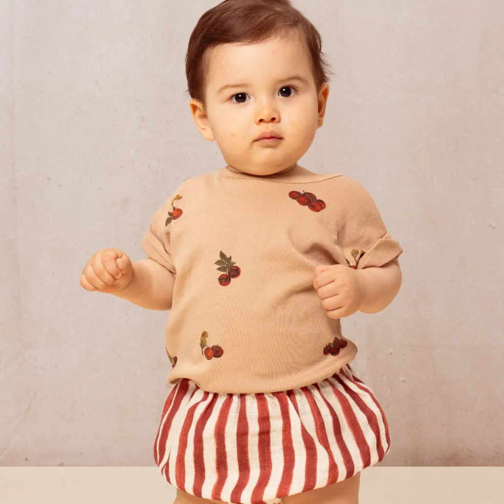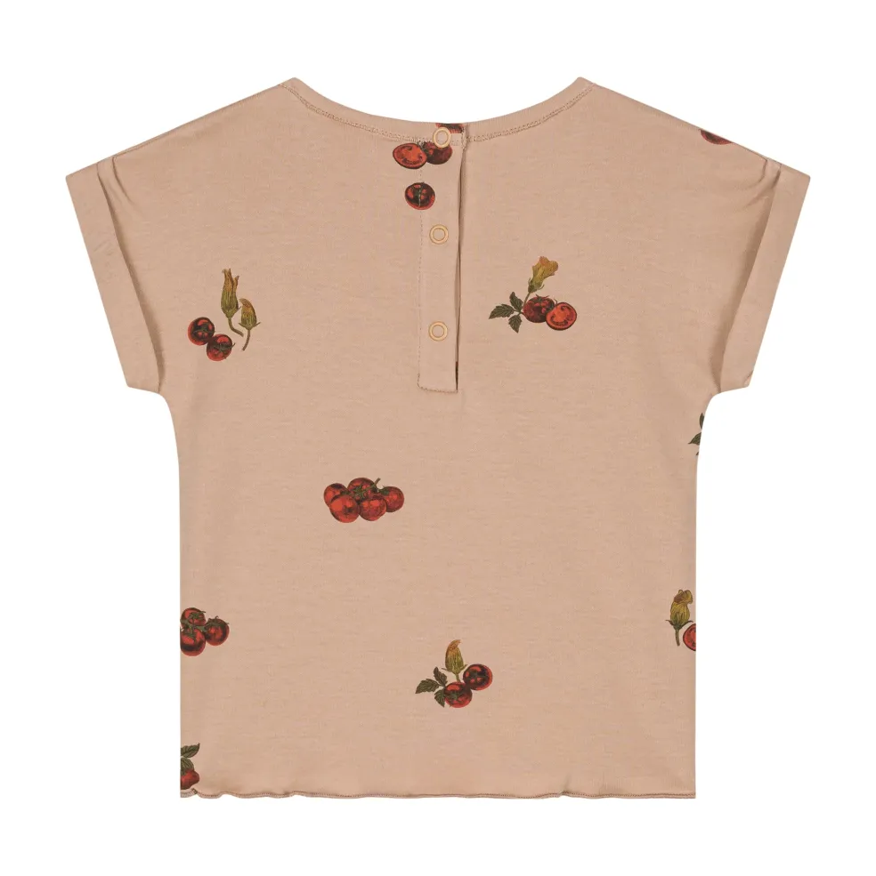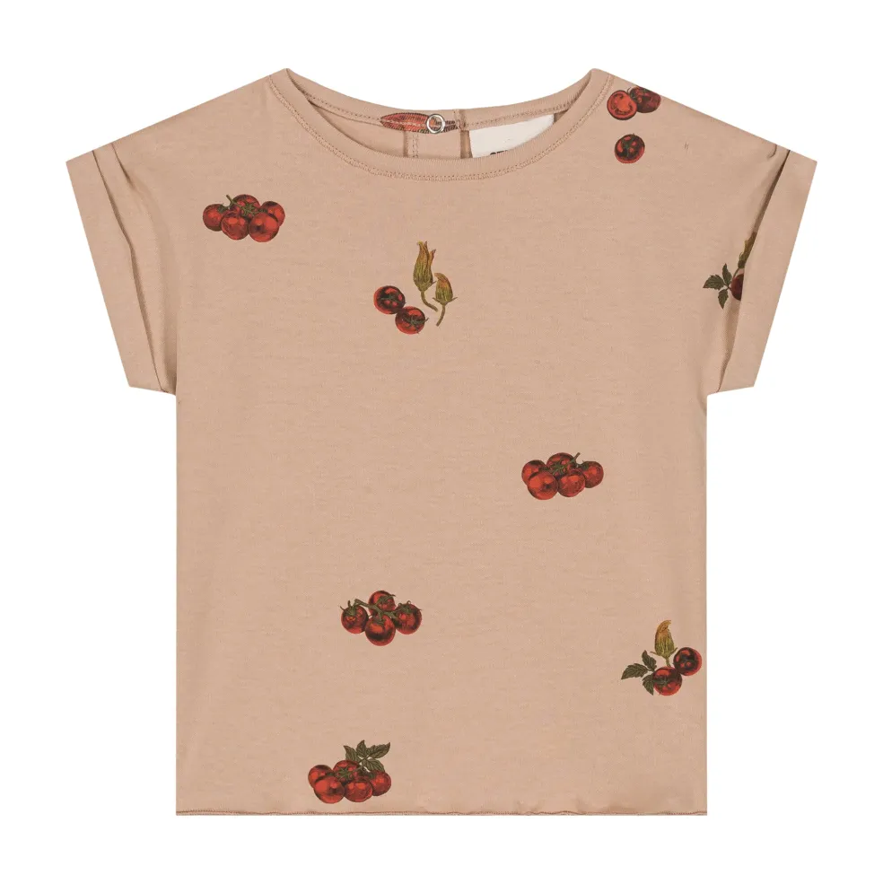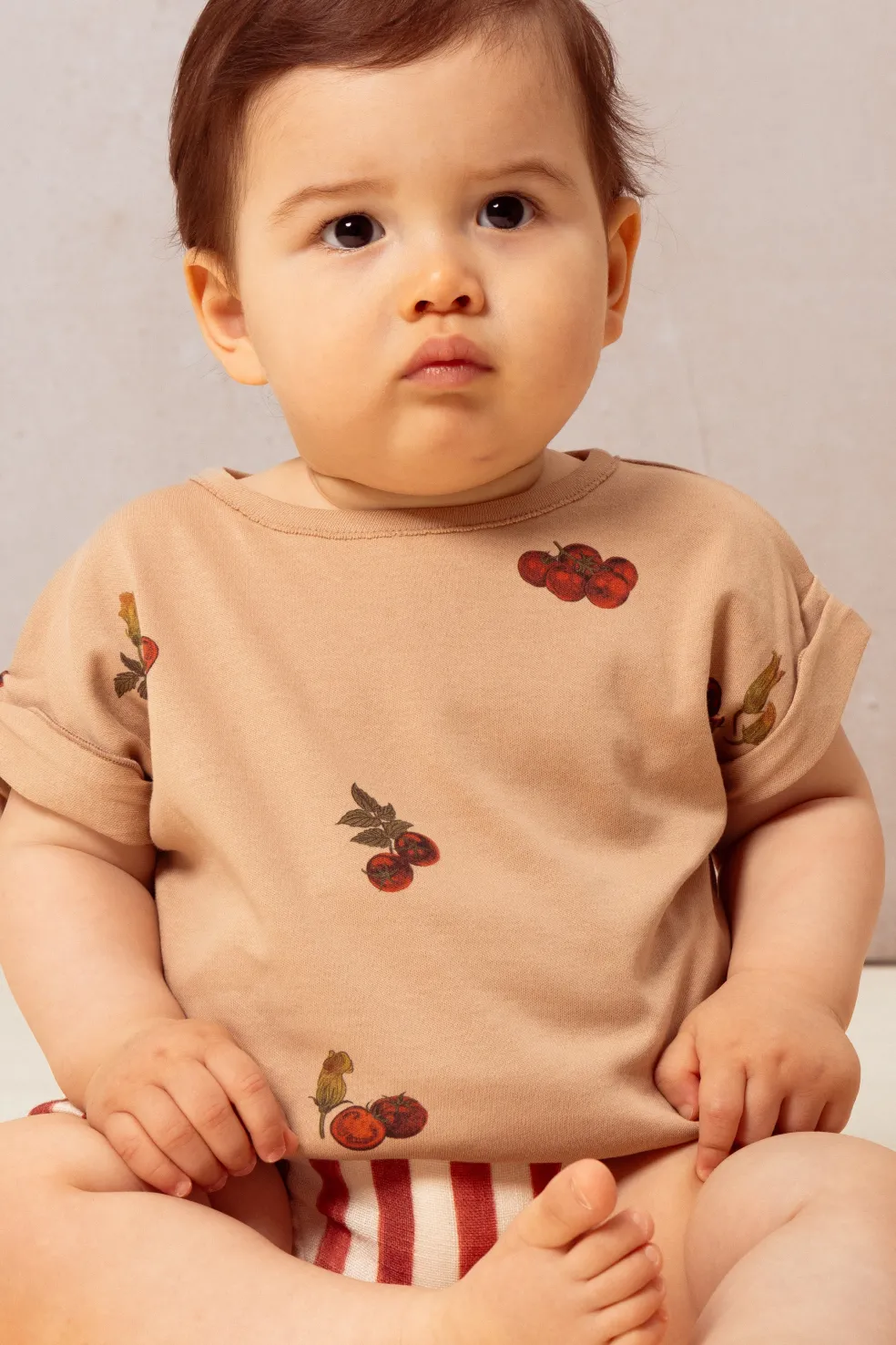 Tee-shirt mixte à motifs tomates, bien trop mimi ! À manches courtes et en coton biologique, il sera tout doux sur la peau.