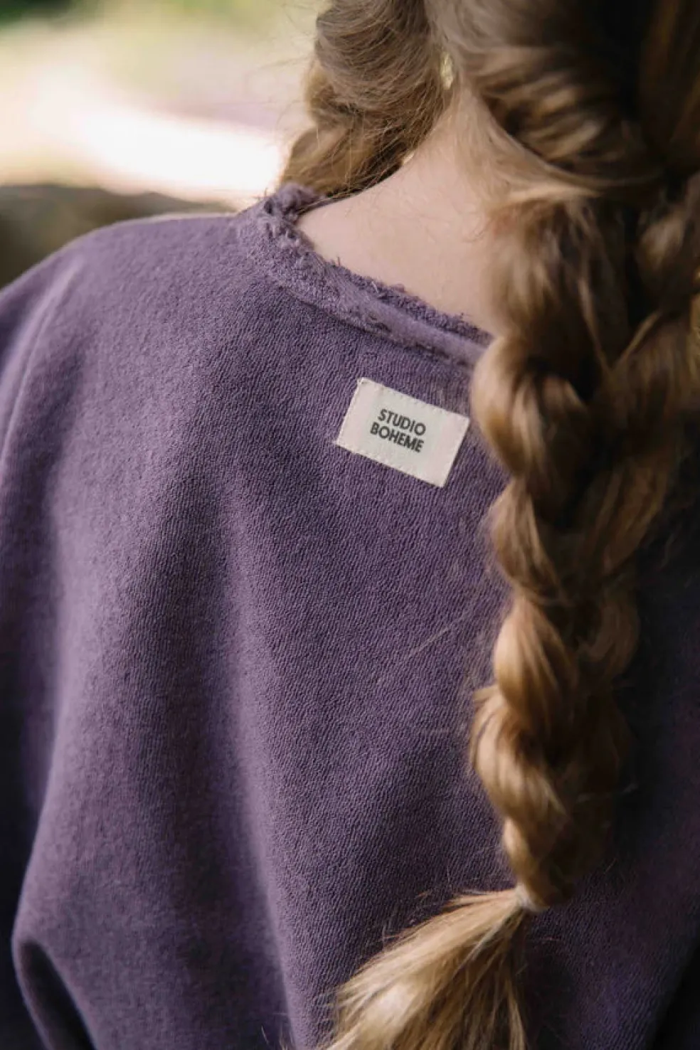 Etiquette décorative Studio Bohème au dos du t-shirt.