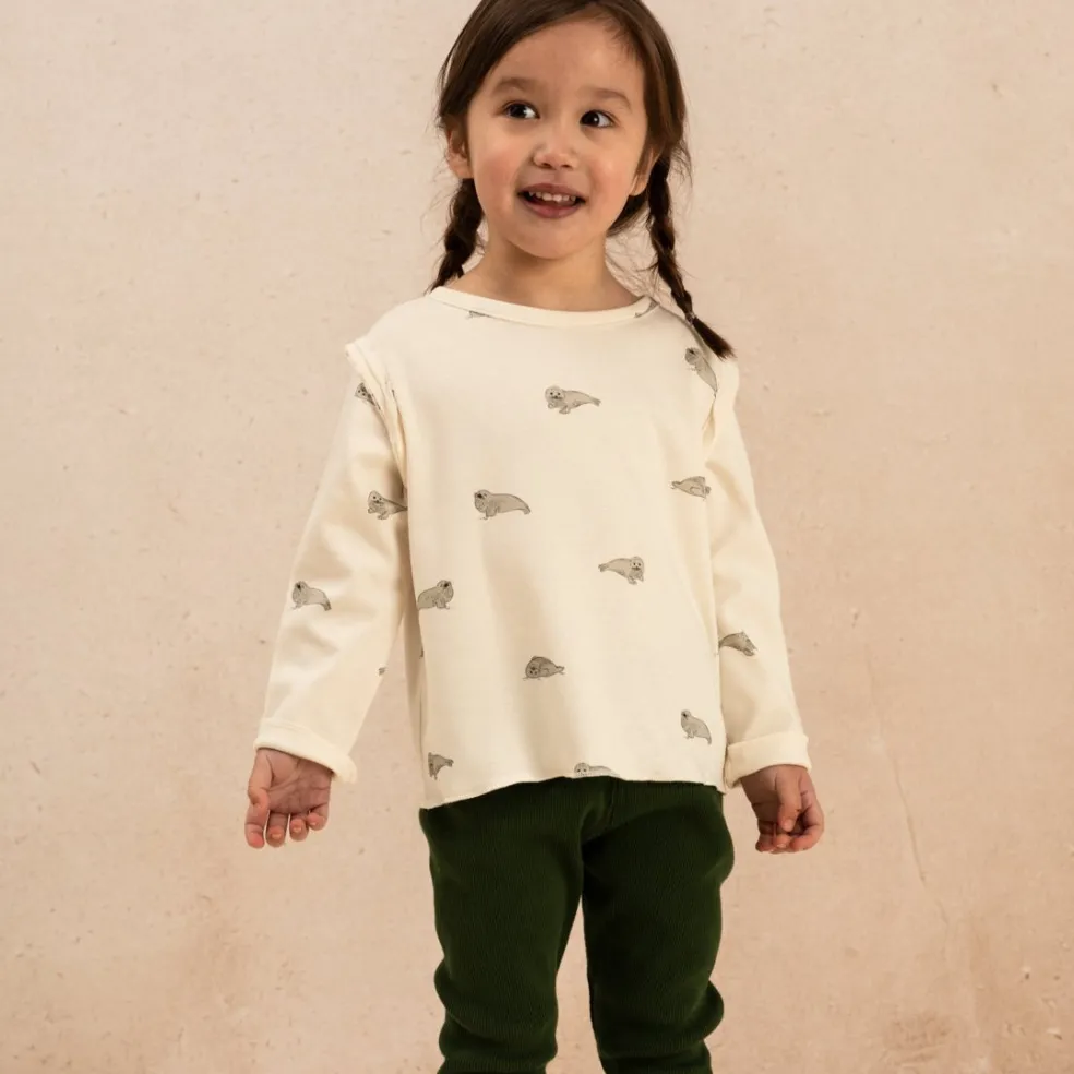 Tee-shirt mixte phoques , bien trop mimi ! A manches longues et en coton pima biologique, il sera tout doux sur la peau.