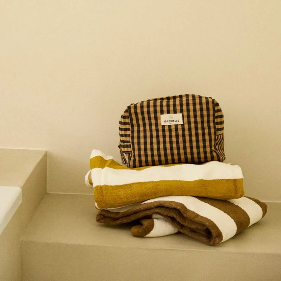 Trousse de toilette vichy de Gabrielle Paris. Craquez pour l’imprimé vichy black, on adore son côté mixte et son grand format ;).